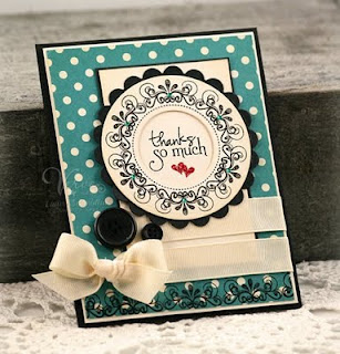Our third challenge was a challenge to embellish with things that start with the letters in VERVE. The winner is Lori with this beautiful card using Snow Wonderful. Isn't that embossed vellum just dreamy? And, OF COURSE, I love the colors! LOL For her embellishments, Lori used Vellum, Embossing folder and Velvet ribbon.Congrats Lori! You've won a $25 gift certificate to the Verve Store!