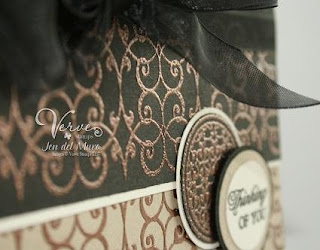 Welcome to Day Two of this month's Project Parade on the Verve blog. Our parade this month focuses on embossing. I can honestly say that I am not much of a technique person, but embossing (both heat and dry) is something that I immensely enjoy. I decided to go ahead and make a sprinkle-ly mess and break out the embossing powder for this project. I started with a Kraft base and stamped the long filigree image from
