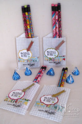 I've use the Ribbon Banner die for all 3 banners and the new Thatched Banner stamp for the middle one :) That big, bold sentiment is the new Birthday to You Plain Jane, a must have (just sayin')! My next project HAD to have treats! LOL Lori's sweet little Back to School treat bags (link to her project HERE) were the perfect inspiration for little surprises my classroom pod colleagues found on their desks yesterday. You see, it was our first Monday back to work AND the first LONG staff meeting.