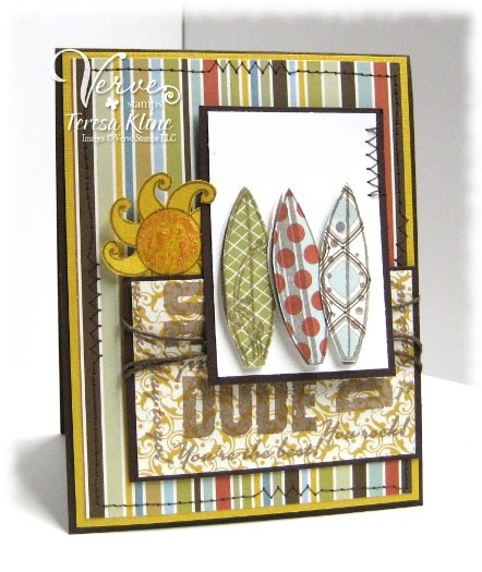 I think this is my favorite Diva Dare theme ever. But also the hardest, because there are so many amazing projects to choose from! I've had a blast perusing various Verve galleries, and in the end chose this very recent and very beautiful card by Kerri Michaud to use as inspiration. I love the woodgrain background and the warm Fall colors especially. Here's my take: