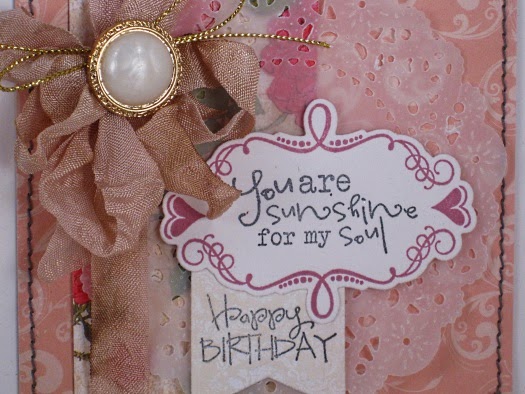 Oh, I've been waiting for this Diva Dare for awhile! I love vellum! I remember being introduced to it a LONG time ago at my Stampin' Up! workshops and loving the softness it brings to a project. So I'm always on the lookout for new ideas with vellum. I came up with the vellum doily idea in the summer during a Verve Release. I didn't want to cover up some pretty mixed media paper and today's card was the same. I didn't want to cover up the gorgeous colours on my patterned paper. Today's card is a for a friend's mom's birthday so I made sure to include these heartfelt sentiments from Doodled Occasions along with the Hearts and Swirls frame from Die Sidekicks.