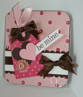 Comfort Plain Jane for this project. I love everything about it! Check out the sponging around the sentiment, the butterfly with pearls, and the lace...totally Vervalicious!! This one is just a beauty.
