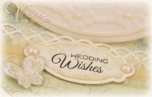 Oh my was it ever hard to choose a paper crafter, let alone one single card. Ya'll work magic with Julee's images and dies!! Well, while perusing the Verve Gallery in Splitcoaststampers, I ran across Colleen Dietrich's White Wedding card found HERE. I fell in love with the pure white design with such a variety of textures. And thought it would be fun to incorporate a Verve die as the focal image. So, I just turned my card on it's side and added the Flutterby die to it. I also finished the inside.